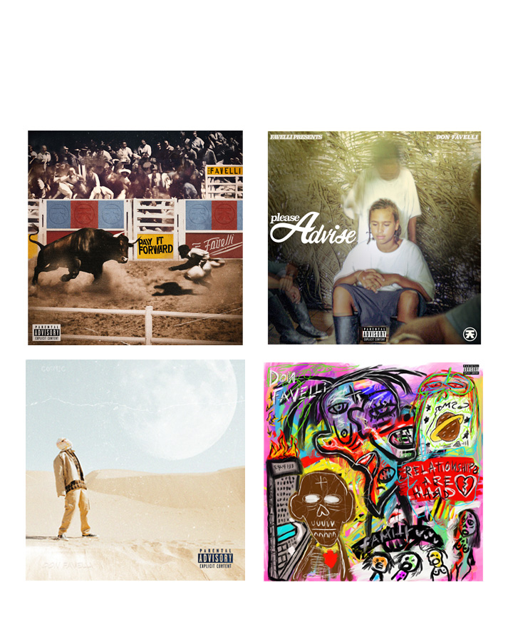 Liner Notes, Collabs Pay It Forward EP Please Advise EP Cosmic Album RAH Album Streetwear Collab Spotify Apple Music YouTube Instagram Facebook Back